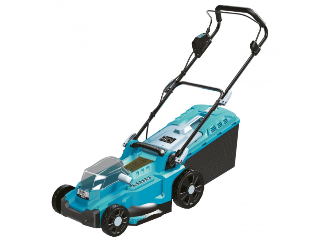 Toto zariadenie je určené na kosenie a starostlivosť o trávniky. Kosačka je poháňaná odolným bezkomutátorovým motorom, napájaný dvoma 18V batériami. Táto konštrukcia umožňuje veľmi tichú prevádzku. Vďaka šírke kosenia 370 mm sa skvele hodí do malých a stredne veľkých záhrad. Kompaktná a ľahká konštrukcia a veľké kolesá uľahčujú manévrovanie so zariadením. Výška kosenia je centrálne nastavená do 6 polôh (25-75 mm). Kosačka má funkciu mulčovania / mletia trávy, vďaka čomu znižujeme objem nakoseného materiálu. Skladacia rukoväť a košík so sieťovinou uľahčujú skladovanie a prepravu. Bezpečnostný spínač a prídavný kľúč chránia pred náhodnou aktiváciou.