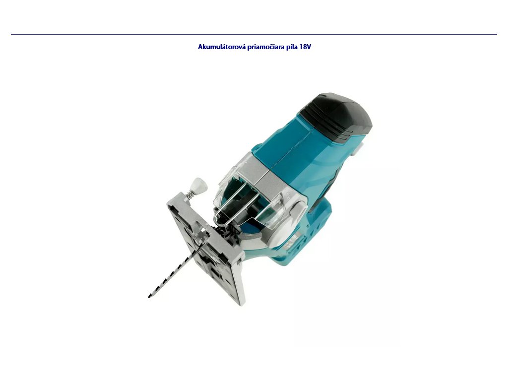 Tento nástroj je určený na rezanie materiálov ako sú: drevo, kov, plast. Zdvih pílového kotúča na úrovni 25 mm zaručuje veľmi vysokú účinnosť prístroja pri práci s tvrdými a hrubými materiálmi. Priamočiara píla je vybavená 3-krokovou funkciou orezávania a funkciou presného rezu. Beznástrojový systém uľahčuje výmenu pílových listov. Kolmé alebo 45-stupňové polohovanie hliníkovej pracovnej nohy je tiež bez náradia. Bezprašnú prácu umožní použitie násadky na pripojenie vysávača alebo odsávača prachu.