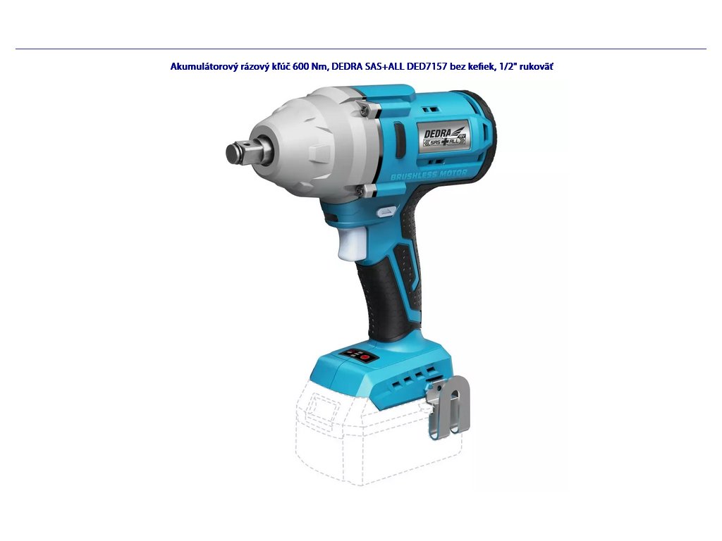 Akumulátorový rázový kľúč 600 Nm, DEDRA SAS+ALL bezuhlíkový, 1/2" rukoväť; DED7157