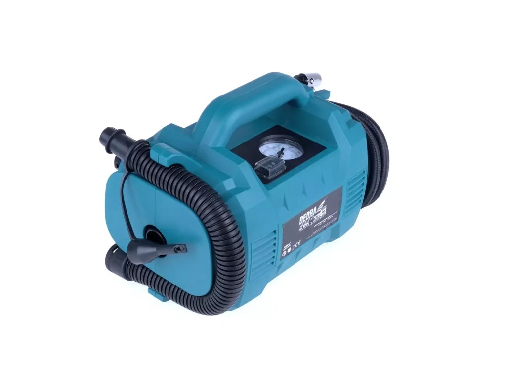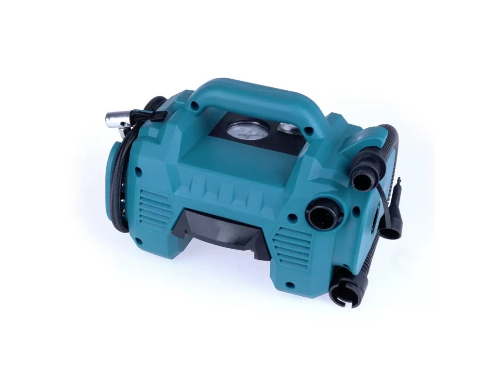 Tlak 0 – 10 Bar, prietok vzduchu 235 l/min. HVLP 13 l/min. pri tlaku 2,4 Bar. Príslušenstvo v súprave: hadička s koncovka na hustenie kolies, dýza na fúkanie lôpt, hadička s koncovka na nafukovanie matracov