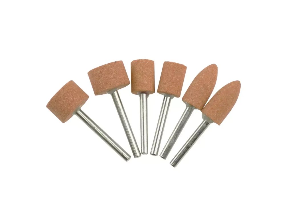 Sada obsahuje: 2ks valcovité s priemerom 15,8 mm a dĺžkou 10 mm, 2ks valcovité s priemerom 10 mm a dĺžkou 13 mm, 2ks kužeľovité s priemerom 10 mm a dĺžkou 19,5 mm, priemer stopky: 3,2 mm