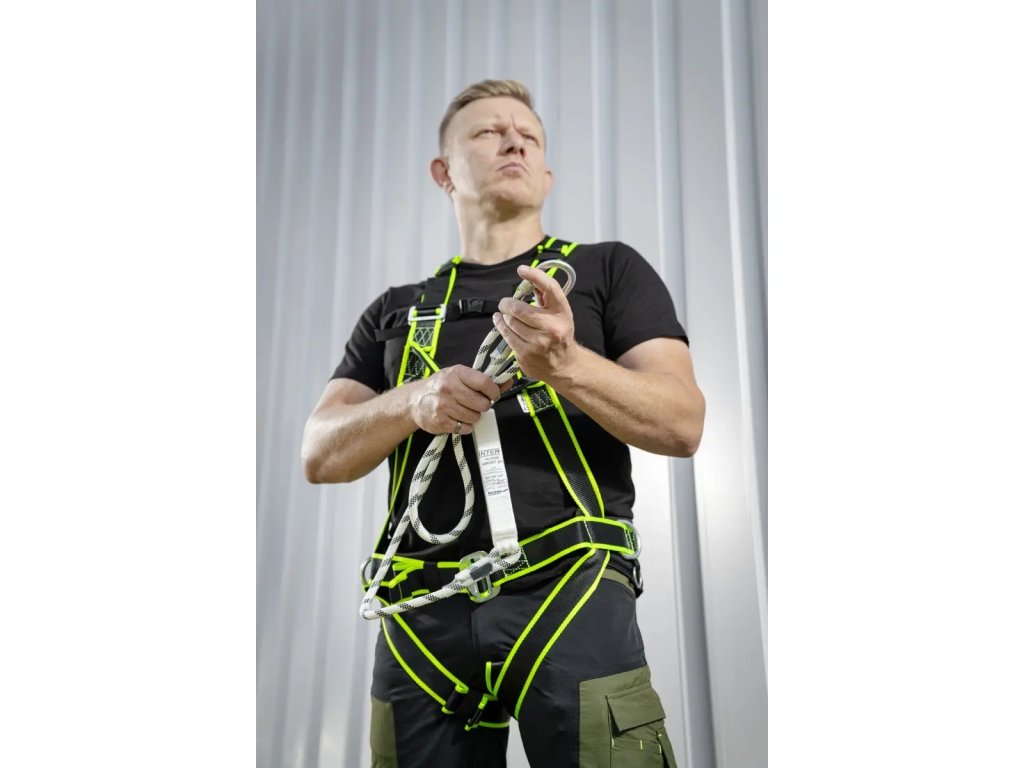 Dva upevňovacie body; nastaviteľná dĺžka popruhov postroja; postroj spĺňa normu EN 361; dodáva sa s: lanom BHSZ14 s karabínou a prenosnou taškou
