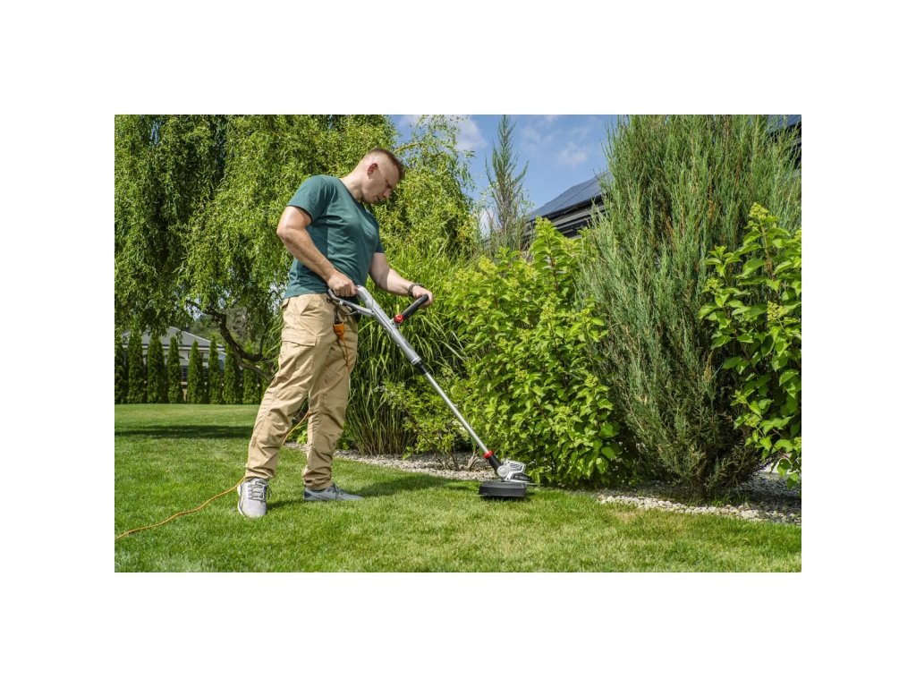 Výkon: 550 W, šírka rezu: Hmotnosť stroja: 550 mm, rýchlosť: 300 mm, otáčky: 10000 ot: Priemer linky (sada): 2,7 kg: Teleskopická nastaviteľná rukoväť, nastaviteľný uhol hlavy, automatický posuv vlasca, v balení: hlava s 2x5m dvojitého nylonového vlasca, prídavná rukoväť,