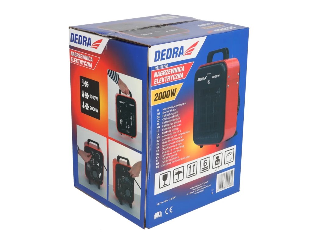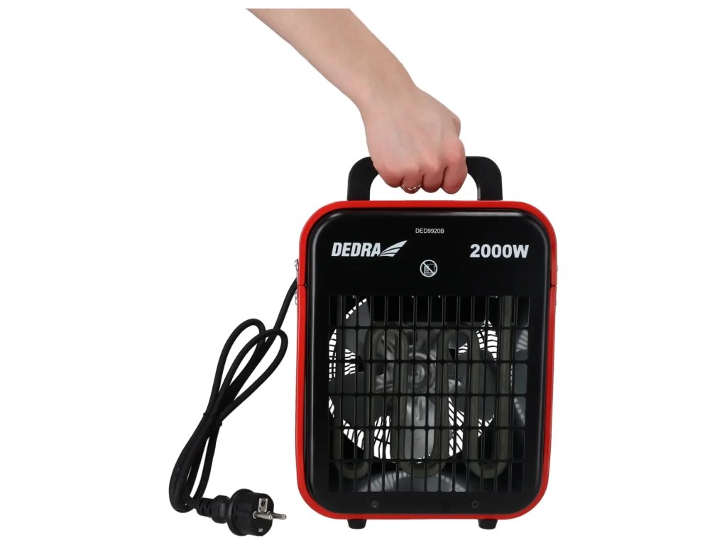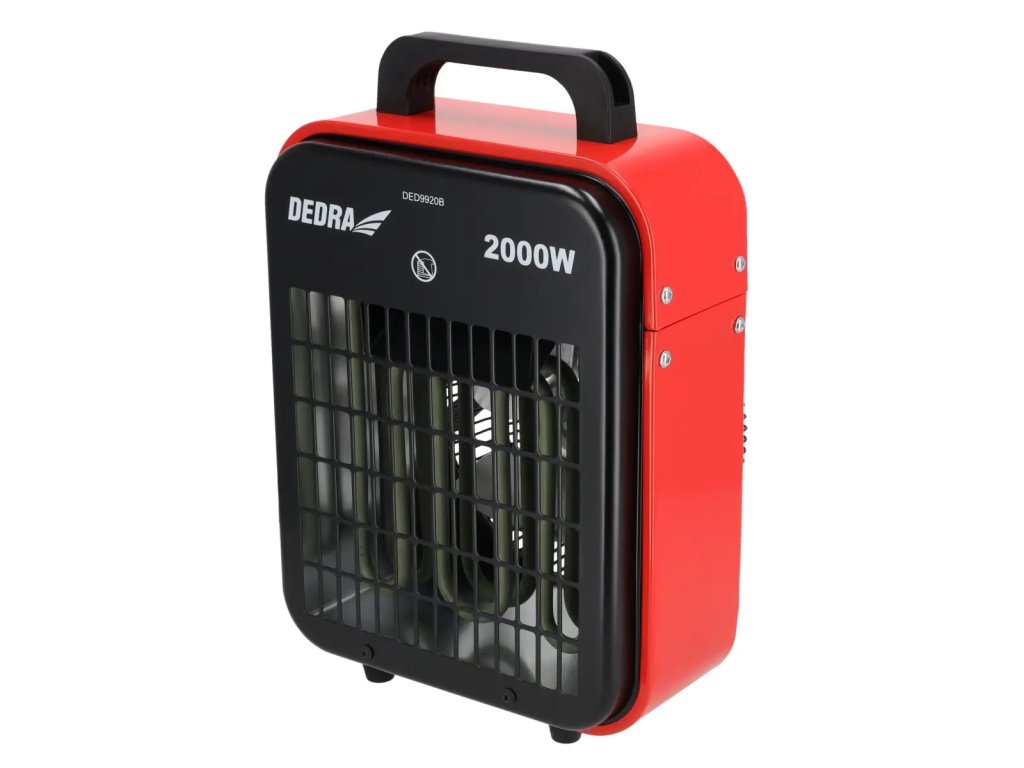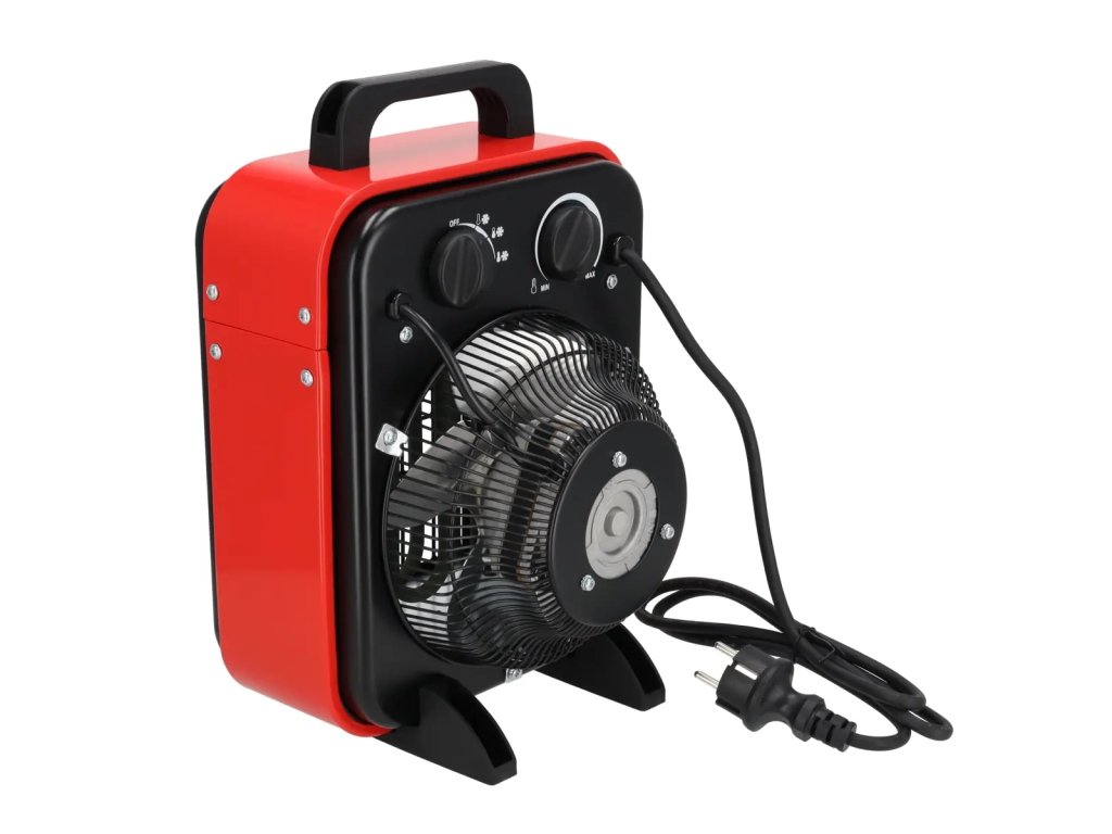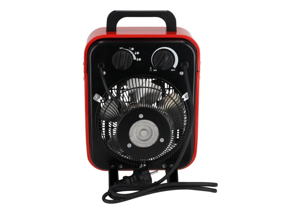 Príkon: 1000 W/2000 W; prietok vzduchu 400 m3/h; zásuvka 230 V; ochrana proti prehriatiu; termostat; 3 prevádzkové režimy: chladný/teplý/horký