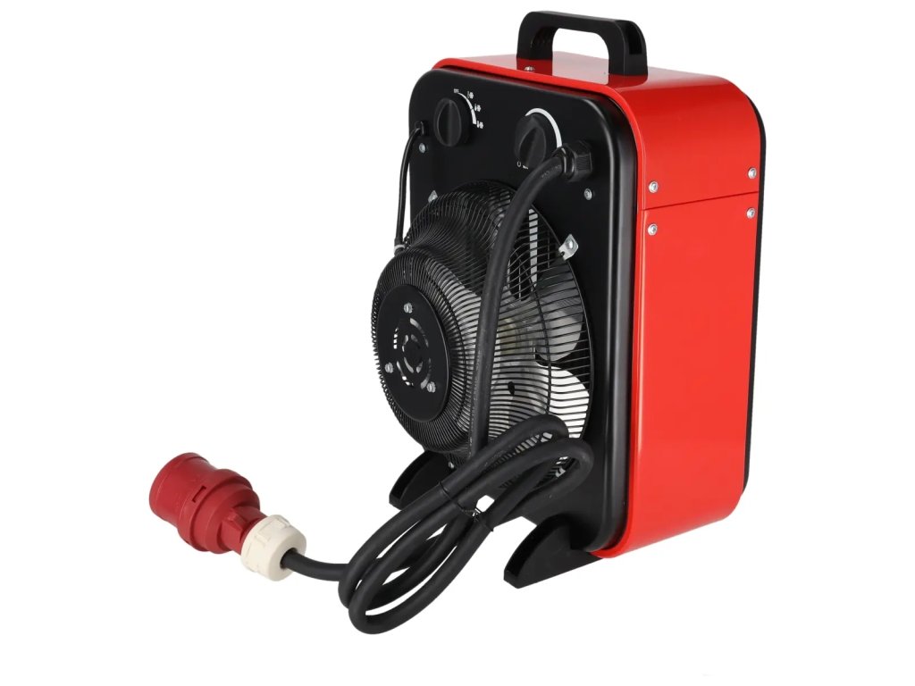 Výkon: 2500 W/5000 W; prietok vzduchu 730 m3/h; 3-fázová zásuvka 400 V; ochrana proti prehriatiu; termostat; 3 prevádzkové režimy: chladný/teplý/horúci