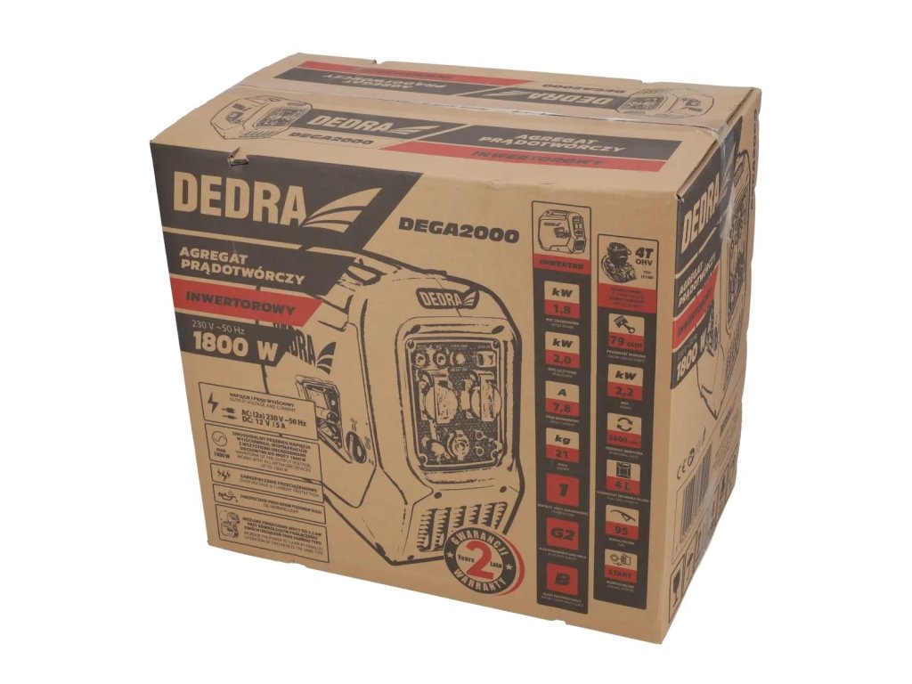 Príkon: menovitý – 1,8 kW/špičkový – 2,0 kW; menovitý prúd: 7,8 A; uhlová rýchlosť: 3800 RPM; motor: 4-taktný jednovalcový OHV; manuálne štartovanie