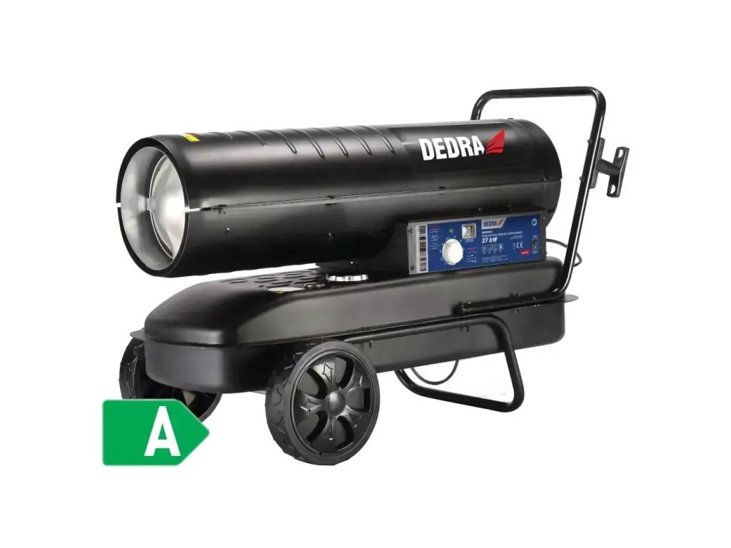 Výkon: 37kW; energetická trieda: A; spotreba paliva: 3,6 kg/h; prietok vzduchu: 750 m3/h; nádrž 38 l; displej a regulácia teploty; palivo: motorová nafta/ľahký vykurovací olej