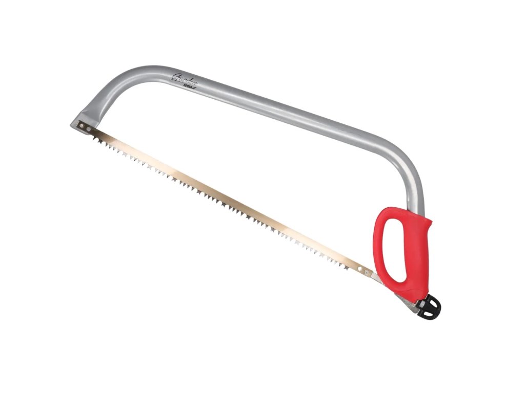 Rám vyrobený z hliníka, tvrdená čepeľ, pílový list na mokré drevo, upevnenie a nastavenie napnutia pílového listu skrutkovým kolieskom, plastová rúčka