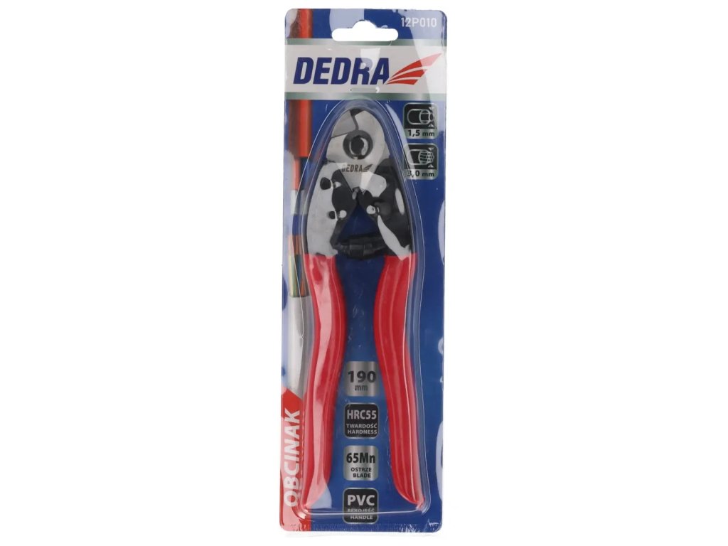 Rozsah priemerov: drôt do 1,5 mm, vlákna do 3 mm, dĺžka 190 mm, materiál: povrch rukoväte PVC, čepele z mangánovej ocele 65Mn, tvrdosť HRC55