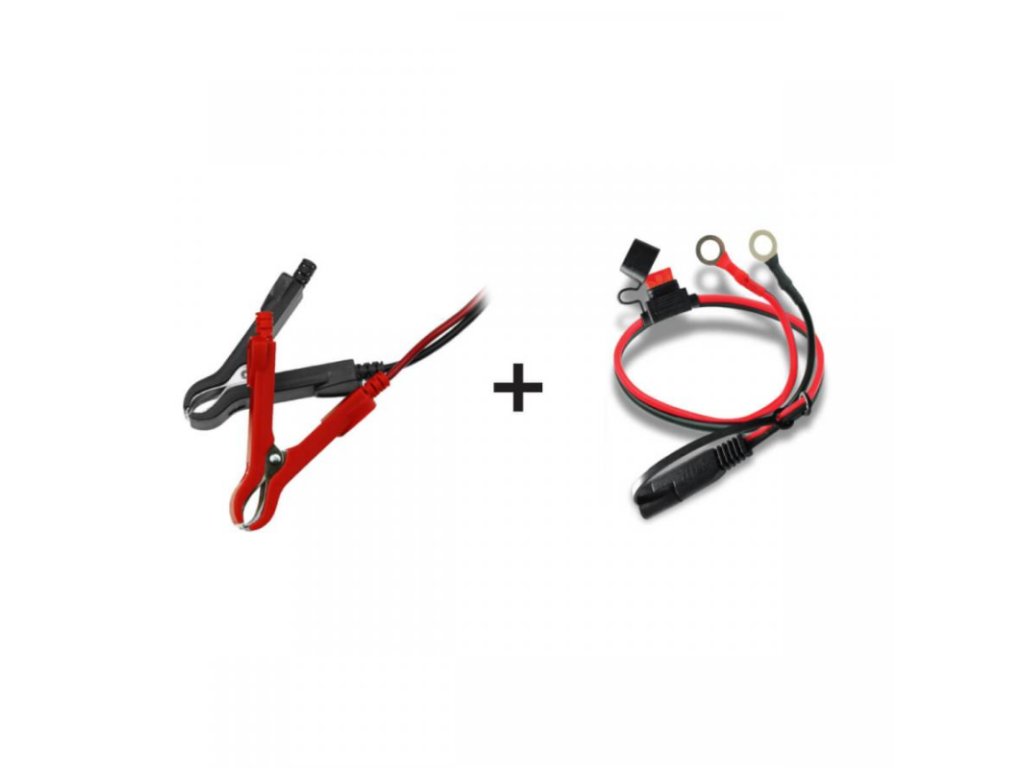 Nabíjacie káble s krokosvorkami pre batériu. Káble sú vybavené krúžkami pre použitie v batériách, kde je ťažký prístup. Vďaka rýchlospojke je opätovné pripojenie nabíjačky veľmi jednoduché a nevyžaduje opätovné sprístupňovanie pólov batérie. Sada káblov je odporúčaná pre usmerňovače DEPM010, DEPM020LFP, DEPM022LF