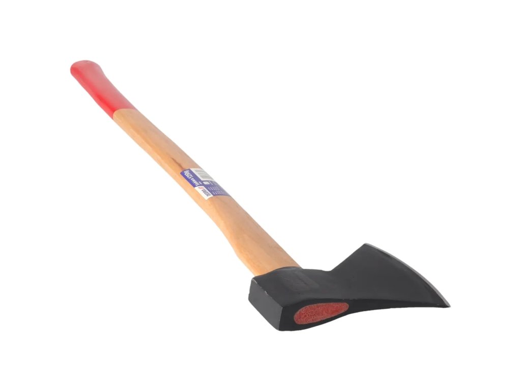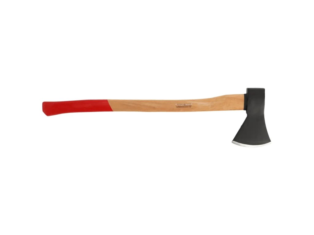Čepeľ: kovaná uhlíková oceľ; rukoväť: bukové drevo; gumová ochrana čepele; klin