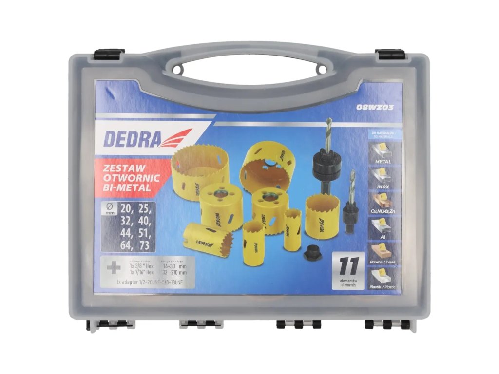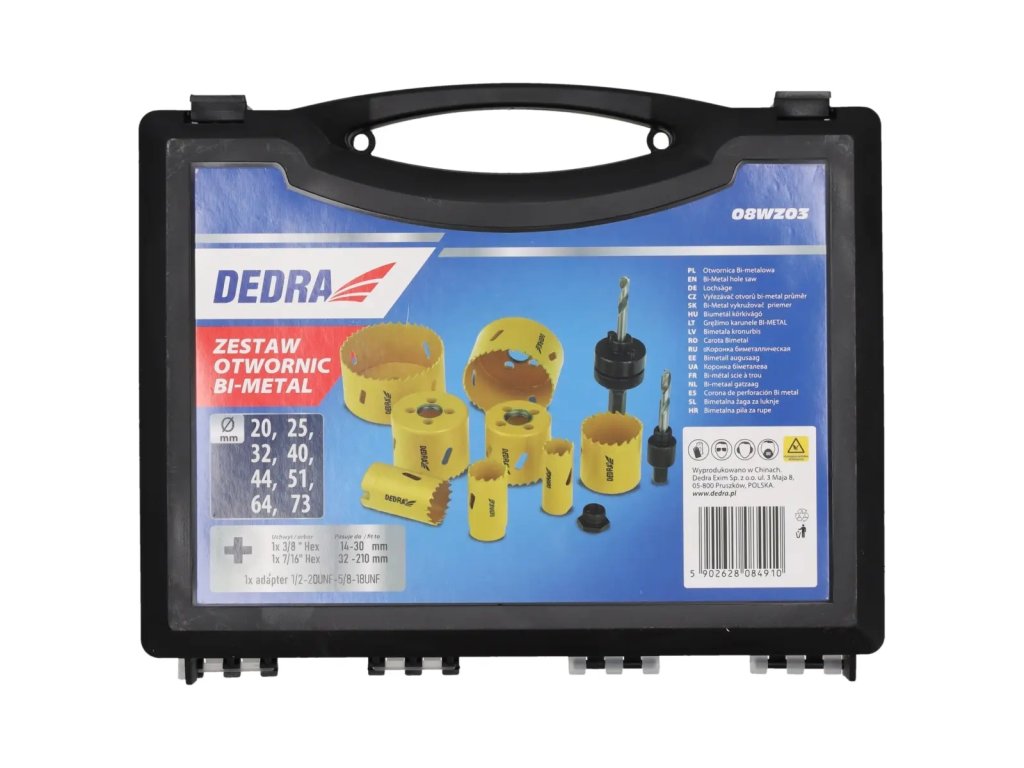Priemery otvorov: 20, 25, 32, 40, 44, 51, 64, 73 mm, 3/8" stopka (14-30 mm), 7/16" stopka (32-210 mm), adaptér