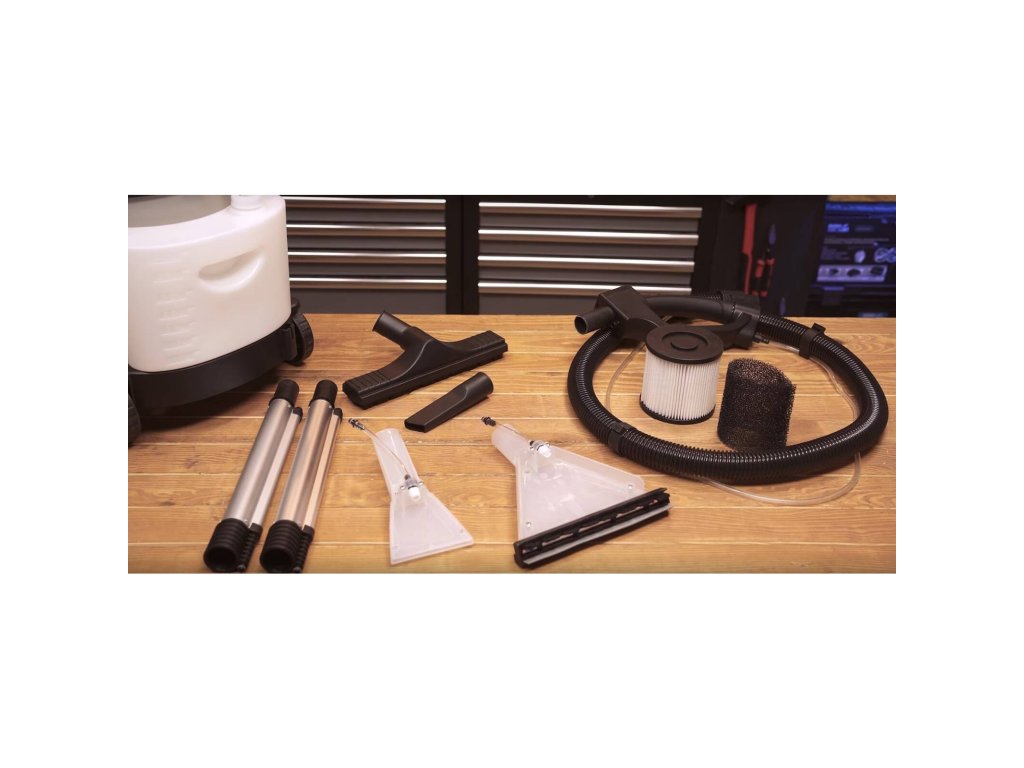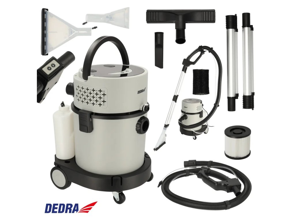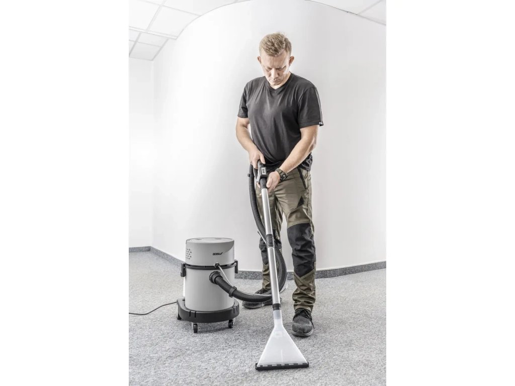 príkon 1200 W, sací výkon 17 kPa, objem nádrže 20 l, dĺžka kábla 4 m, dĺžka hadice 1,5 m, hlučnosť 76 dBA, príslušenstvo: 2 hliníkové nadstavce, kefa na čistenie kobercov, kefa na čalúnenie, štrbinová kefa, mokrá a suchá podlahová hubica, hadica s diaľkovým ovládaním, kazetový filter hubicový filter